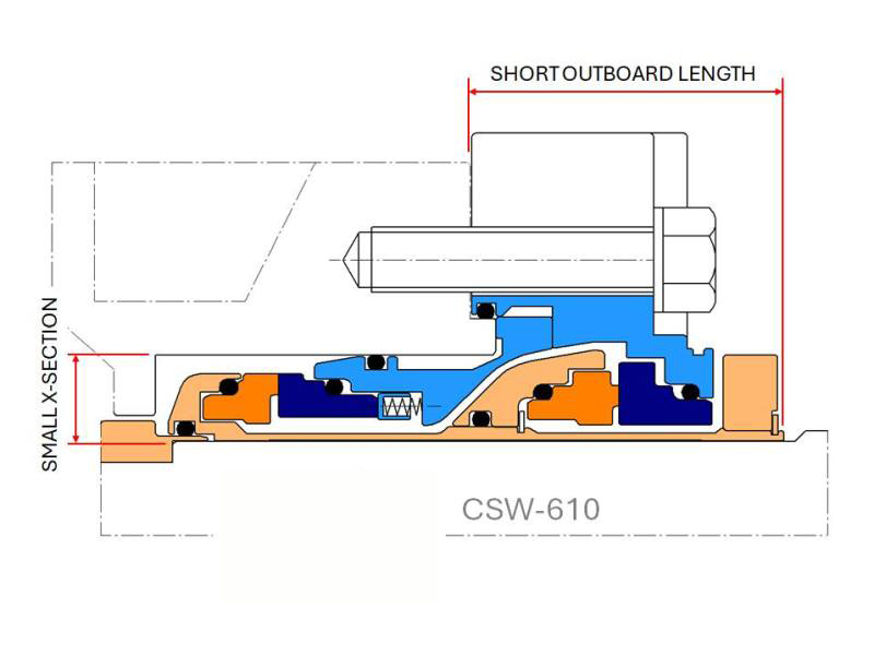 - Process pumps with small “x-section” seal chambers and minimal outboard gland clearance — the CSW-610 is designed specifically for these constraints.