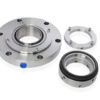 This Stainless Steel External Single Dry Seal Cartridge Assembly features a monolithic rotary seal face and a shrink-fitted, clamped stainless steel stationary, along with a gland plate and bearing housing.